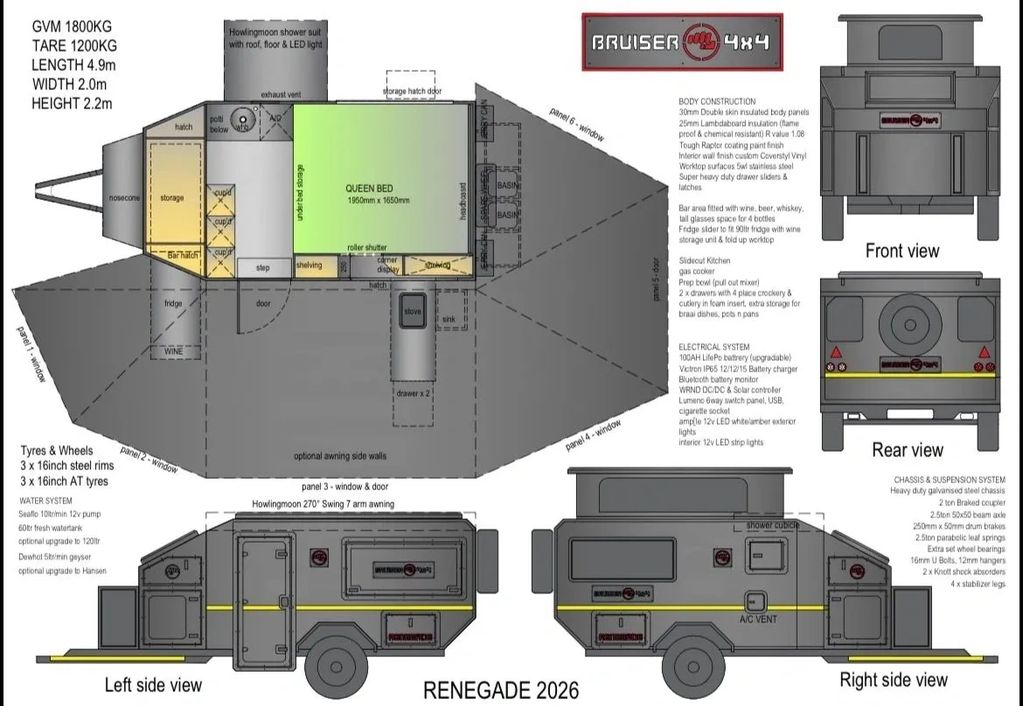 — 4sleeper for families with rear slide-out bed for bigger internal living and seating area that converts into bunk beds for versatility.